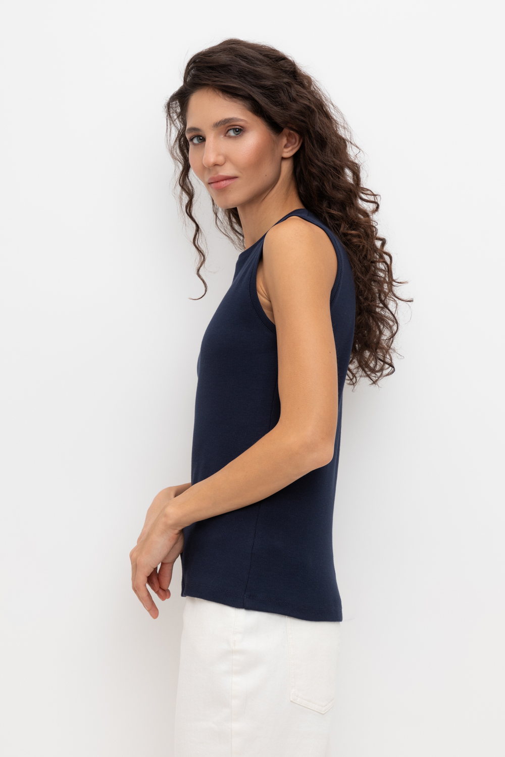 Базовая майка из трикотажного полотна в рубчик с добавлением эластана.