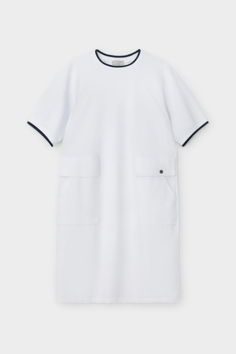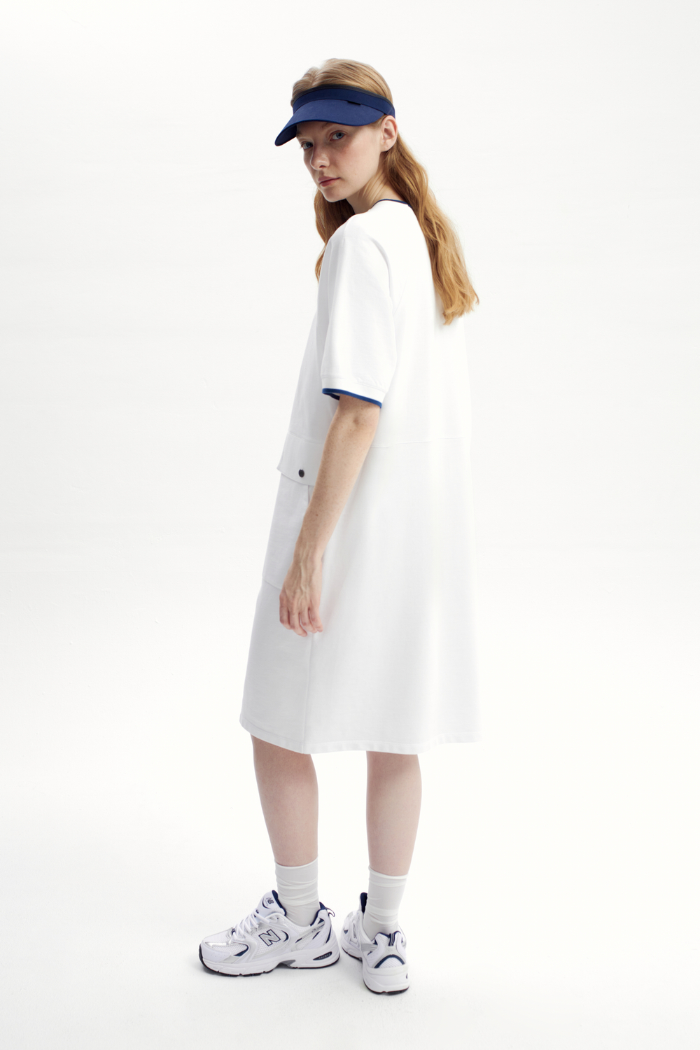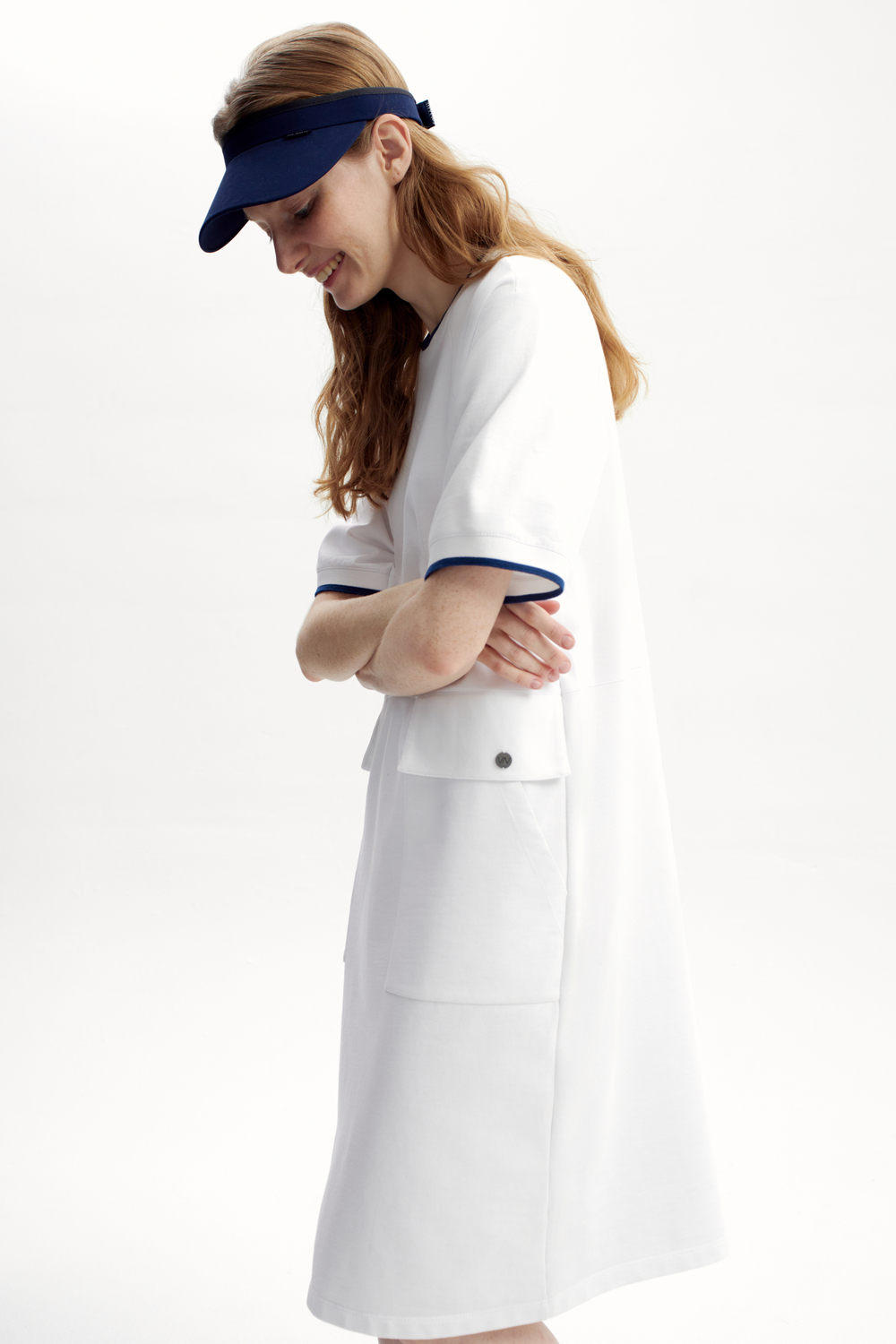 Летнее платье для создания спортивного образа из трикотажного полотна футер, изготовленного из гребенной пряжи. Декоративные манжеты и горловина выполнены из эластичного трикотажа.