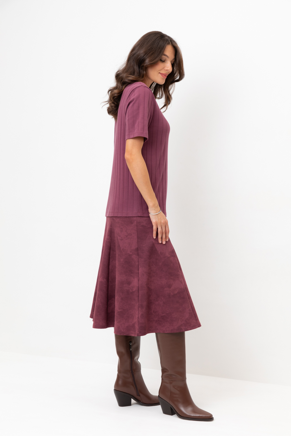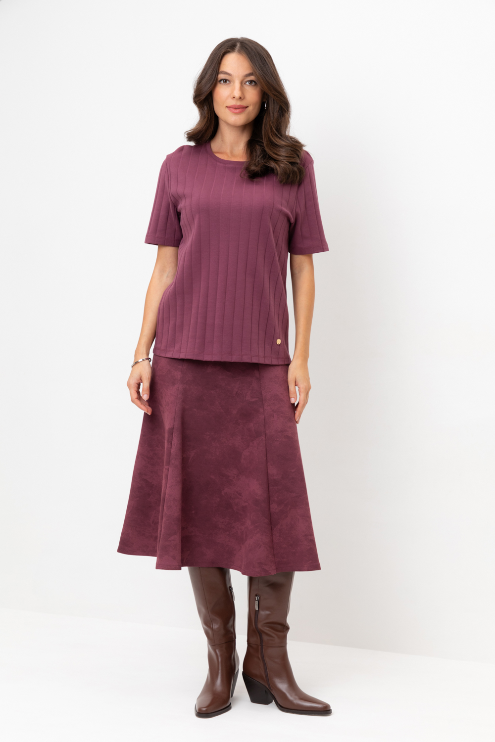 VN Юбка ЕВТ 7024 сливовое вино, эффект замши VN