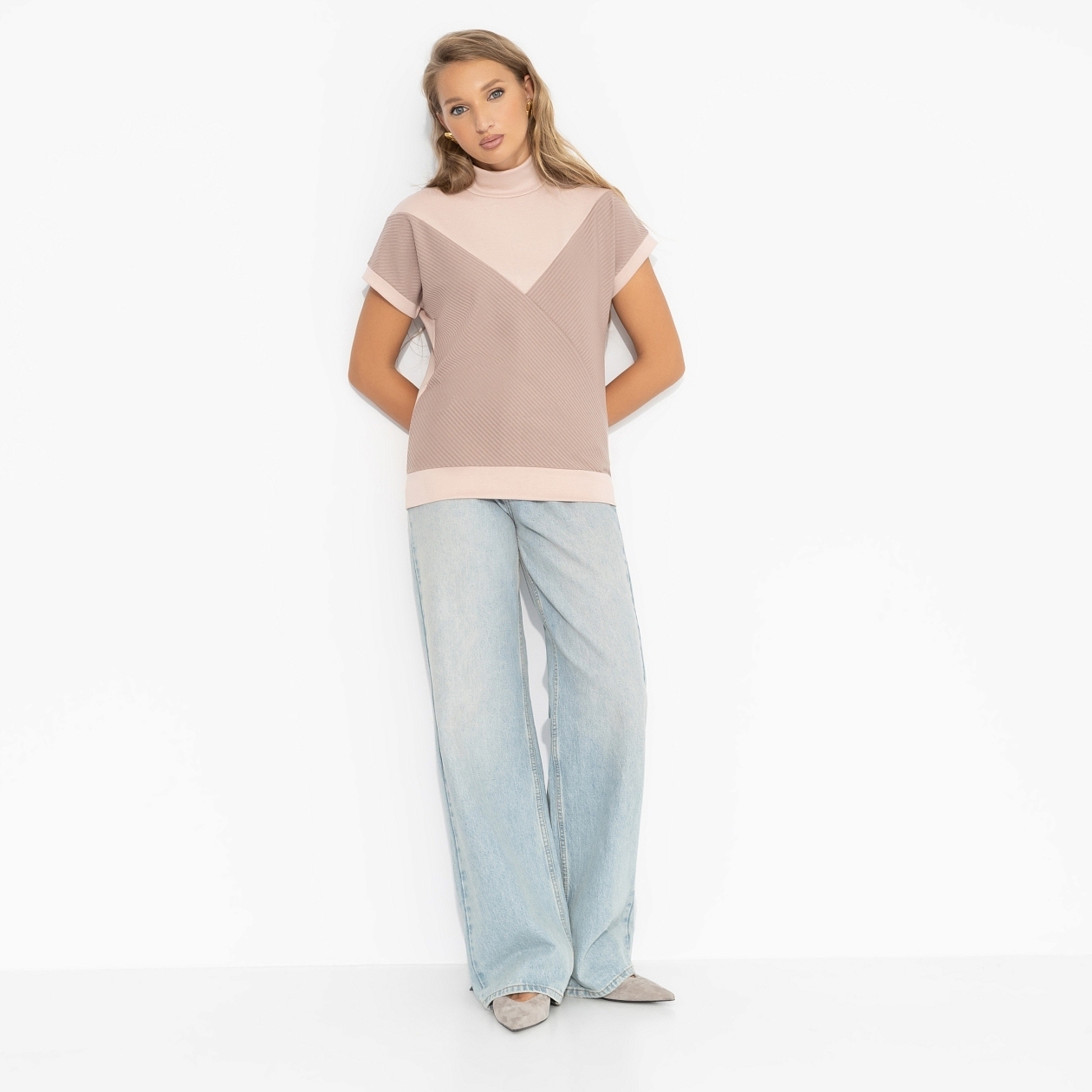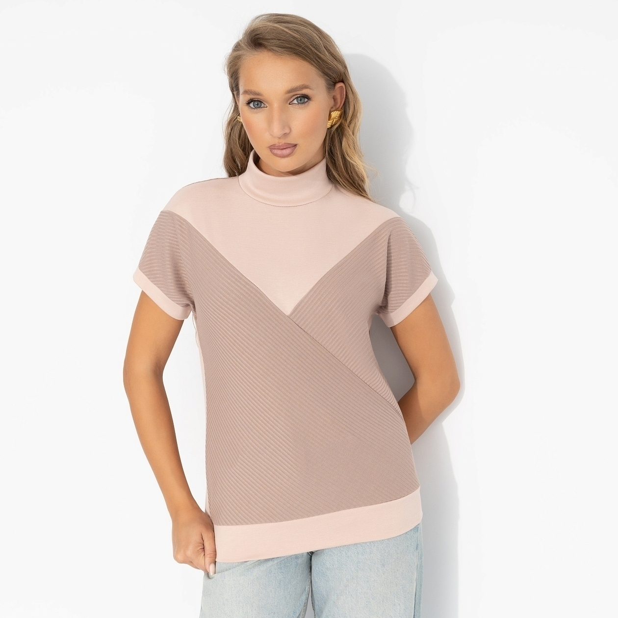 «Она верила в утро и в чудеса». Эта водолазка создана для моментов, когда хочется быть собой, без масок. Нежная фактура и оттенок капучино делают образ по-настоящему женственным. Водолазка с коротким рукавом в комбинаций ввух видов ткани. Посадка свободная.