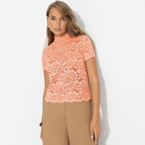 Водолазка ЧАРУТТИ – мгновенное приглашение в центр внимания. Её сочный оттенок и соблазнительная текстура делают её магнитом для восхищенных взглядов в любой обстановке. В ней чувствуешь себя уверенной и неотразимой, будто только что сошла со страниц глянцевого журнала. Это история о том, как одна вещь может говорить громче любых слов, безоговорочно утверждая твой статус иконы стиля. Водолазка прямого силуэта. Изделие слегка укорочено. Материал изделия – кружево. Водолазка просвечивает. Подол изделия из необработанного края кружева. Отвороты на рукавах прошиты.