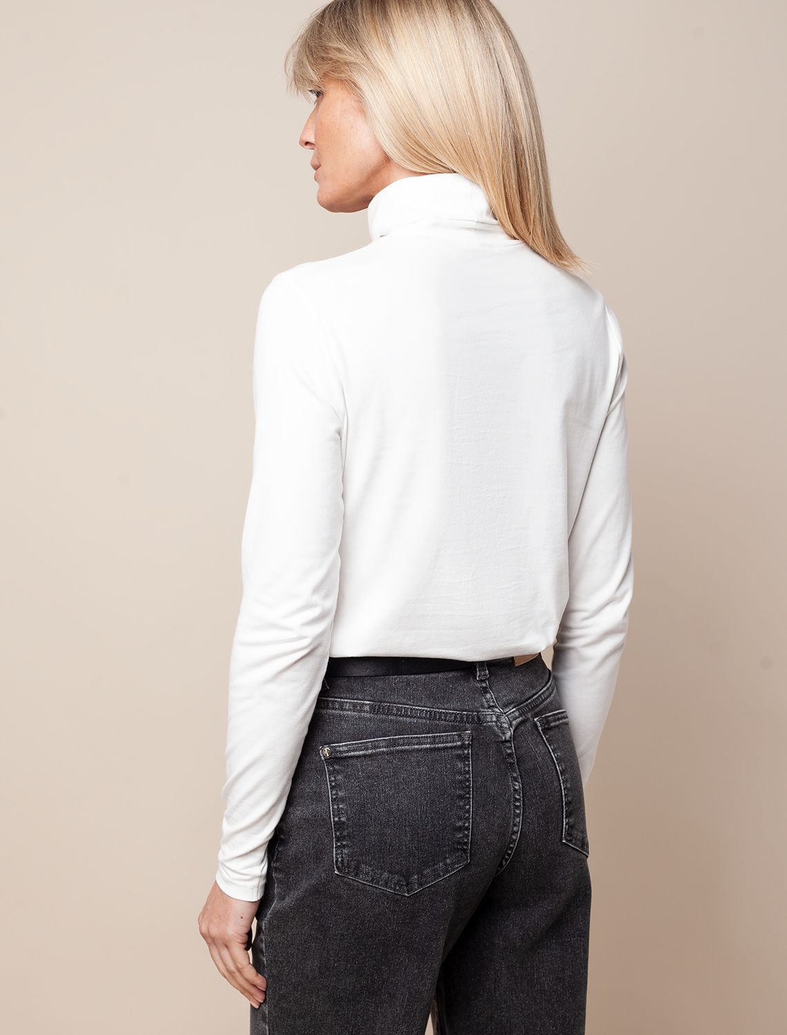 Водолазка выполнена из премиального хлопка с добавлением эластана. Гладкий трикотаж обеспечит гарантированный комфорт и удобство в использовании. Внизу изделия металлическая нашивка с логотипом бренда. Совет стилиста: водолазка может заменить рубашку в нестрогом офисном образе или подружиться с джинсами-трубами, жилетом и кедами в расслабленном повседневном наряде.
