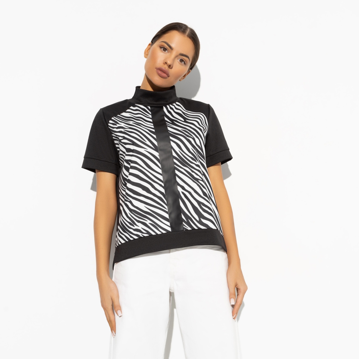 Эта водолазка не для тех, кто скрывается в тени. Она создана для тех, кто готов заявить о себе миру. Сочетание трикотажа «милано» и «набивного» трикотажа обеспечивает комфорт и стиль, а вставки из экокожи добавляют смелости и оригинальности вашему образу. Выразите свою смелость и уверенность в этой водолазке, которая подойдет для любых ситуаций, от повседневных встреч до важных переговоров.