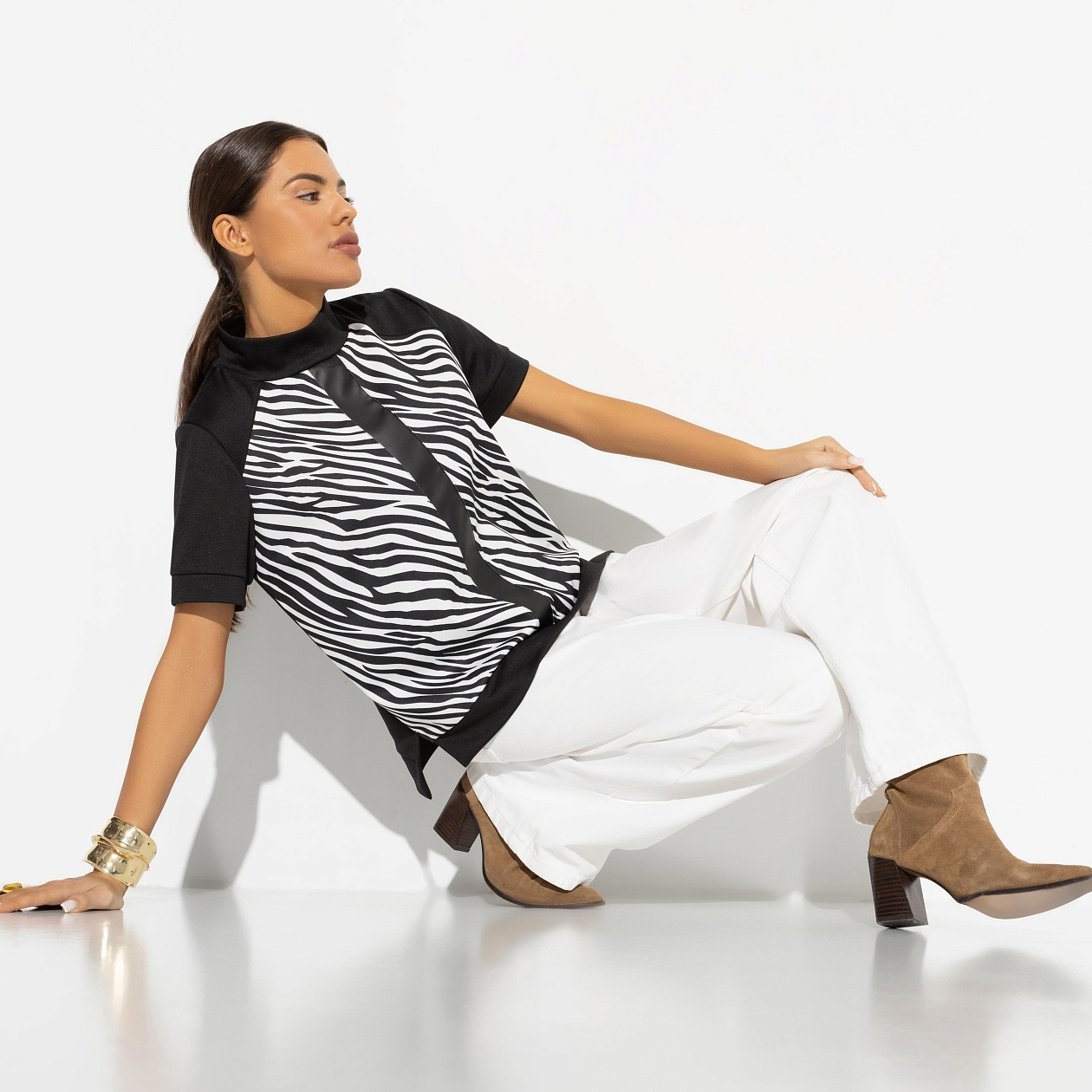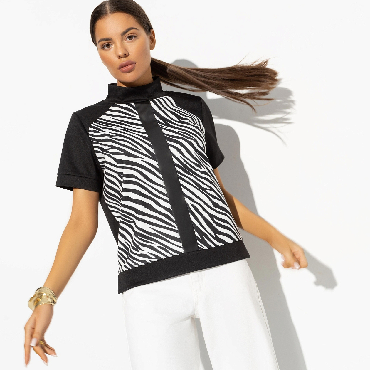 Затаиться и наблюдать – часть твоей жизненной стратегии. Понимать причины и следствия, видеть, как зарождается дружба и перерождаются отношения. В водолазке с анималистичным принтом ты чувствуешь себя героем документального кино о диком мире саванны. Водолазка с коротким рукавом. Есть деликатные разрезы по бокам изделия. Повороты на рукавах прошиты.