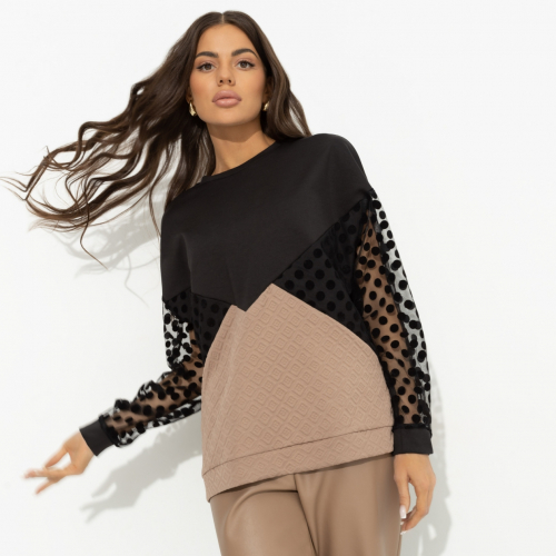 Эта водолазка не для тех, кто скрывается в тени. Она создана для тех, кто готов заявить о себе миру. Сочетание трикотажа «милано» и «набивного» трикотажа обеспечивает комфорт и стиль, а вставки из экокожи добавляют смелости и оригинальности вашему образу. Выразите свою смелость и уверенность в этой водолазке, которая подойдет для любых ситуаций, от повседневных встреч до важных переговоров.