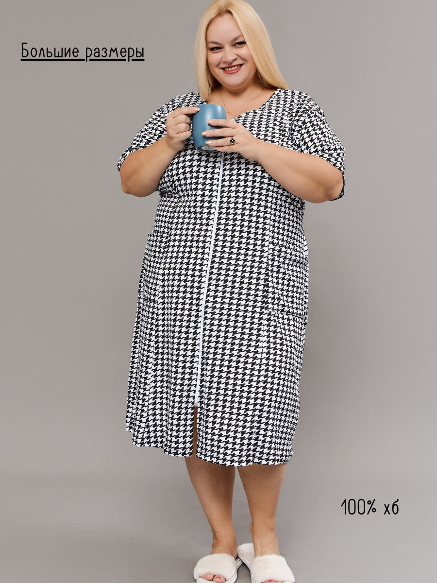Модель: Халат домашний на молнии больших размеров Х-01 гусиная лапка