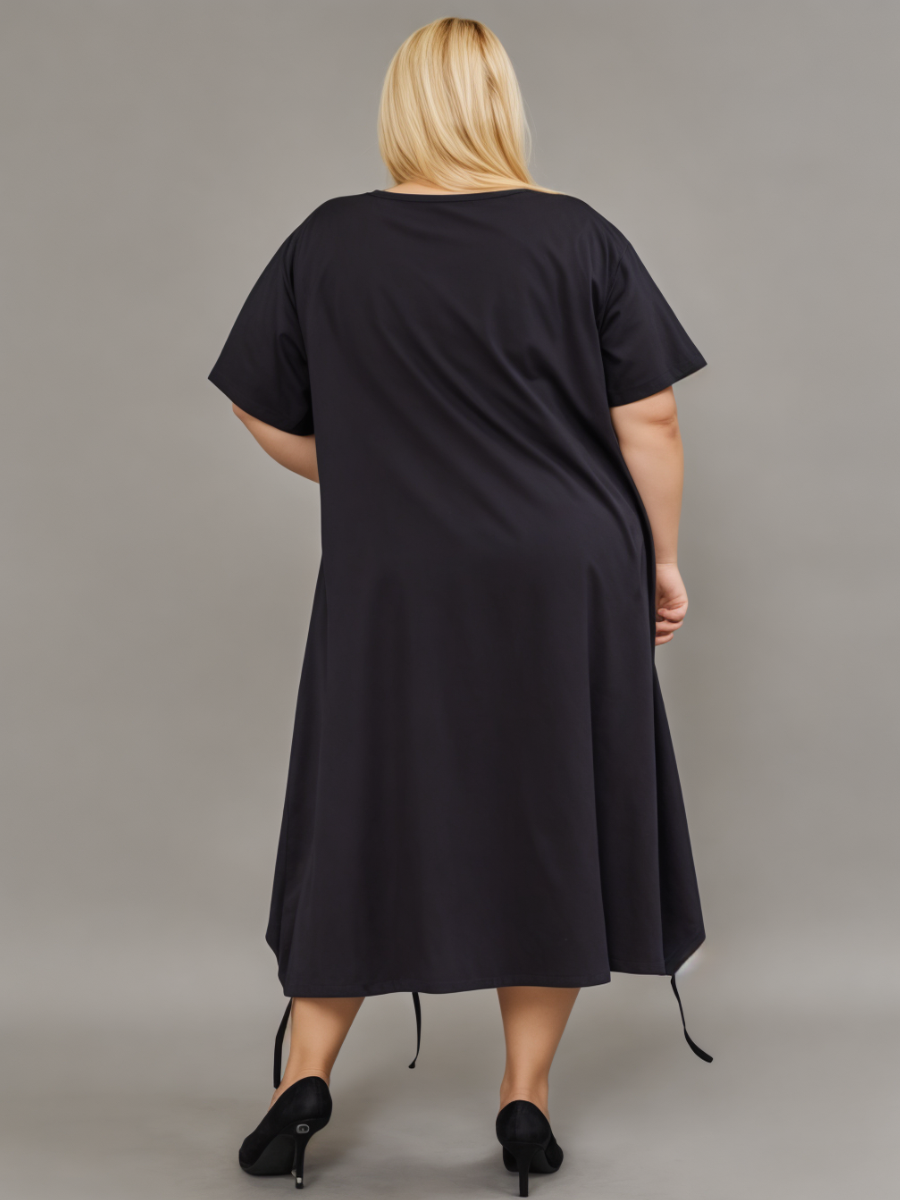 Представляем вам уютное домашнее платье больших размеров созданное для комфорта и стиля в каждый день. Это хлопковое платье свободного кроя с расклешенной юбкой миди идеально подойдет для женщин plus size, обеспечивая свободу движений и ощущение легкости. Черный цвет с классическим рисунком гусиная лапка придает ему элегантный вид, а округлый вырез горловины и рукава 3/4 добавляют женственности. Наличие накладных карманов - практичный бонус для хранения мелочей. Свободный покрой и мягкий ивановский трикотаж из 100% хлопка подарят вам максимальный комфорт в течение дня. Это платье станет незаменимым спутником для отдыха дома, создавая атмосферу уюта и расслабленности. Цвет: ; Материал: кулирка;кулирка; Состав: 100% хлопок.