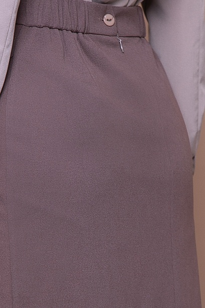Юбка из трикотажного полотна с имитацией запаха.По талии притачной пояс с вставками из резины,в среднем шве спинки застежка молния.