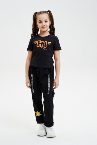 Юбка детская для девочек свободного силуэта, с широкой эластичной резинкой на поясе, с накладными боковыми карманами оформленными декоративными яркими звездами.Отлично сочетается с джемперами, жилетками, укороченными толстовками, футболками.