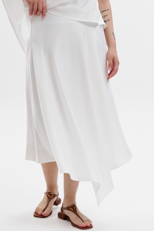Юбка трапециевидного силуэта на подкладе асимметричного кроя.