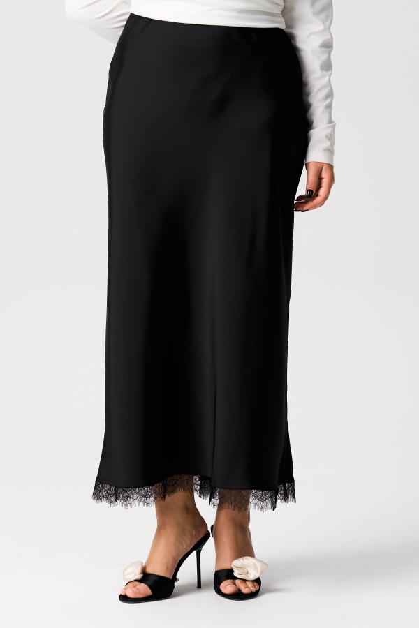 Модель полуприлегающего силуэта “гаде”. Пояс на обтачке с резинкой. Низ изделия оформлен утонченным, французским кружевом.