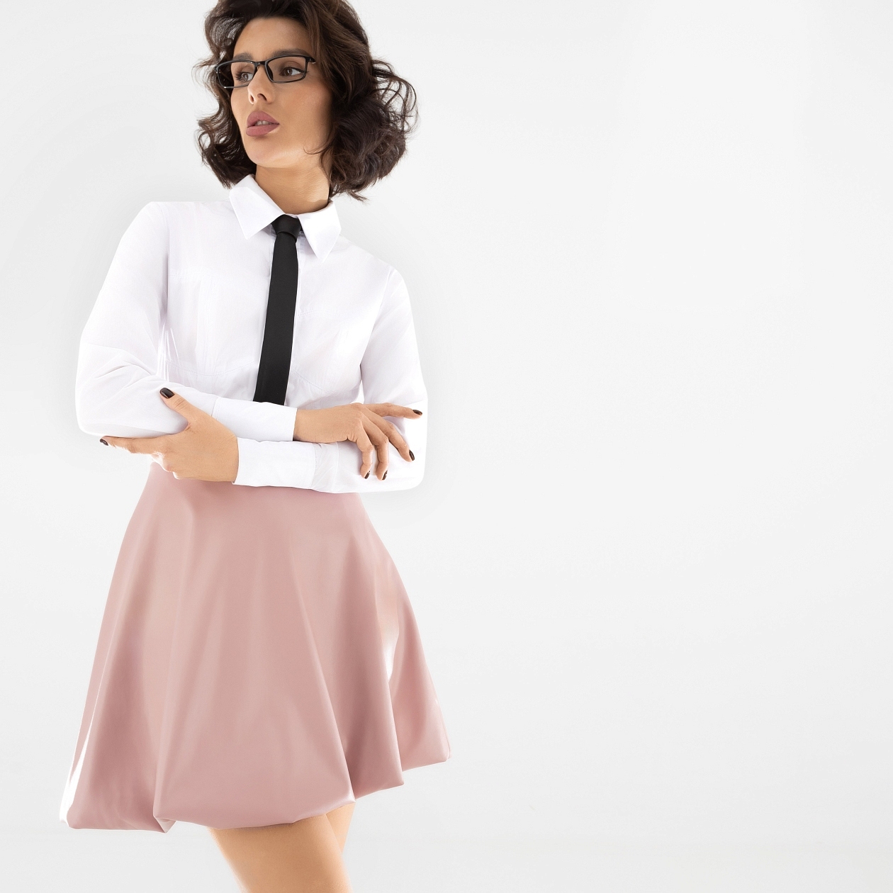Для пошива юбки-баллона нежного пудрового оттенка использовали мягкий пластичный материал, стилизованный под кожу. Полотно изготовили из переработанного полиэстера, сэкономив природные ресурсы и снизив вред, причиняемый природной среде. Must-have для эко-френдли модниц. Юбка расклешенного кроя в длине мини. Посадка на талии. Юбка застегивается на скрытую молнию сзади изделия. Есть трикотажный подклад.