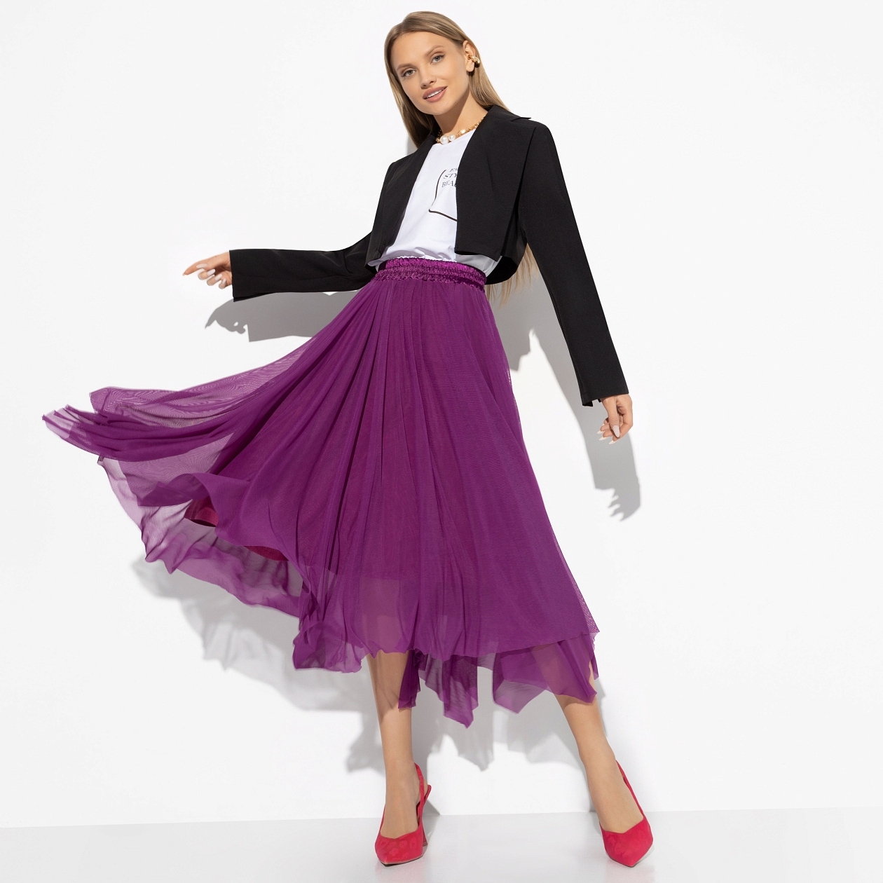 Позвольте представить вам уникальное изделие для модных и уверенных в себе женщин — юбку «Экстремально прекрасна (cabaret)». Эта модель произведена из высококачественных тканей: сетка стрейч, трикотаж вискоза и сатин креш, что гарантирует ей исключительное сочетание комфорта и стиля. Яркий ягодный оттенок притягивает взгляды и окутывает ауру загадочности и изысканности. Именно в этой юбке каждая женщина сможет выразить свою индивидуальность и оригинальность. Оптом этот товар станет настоящей находкой для магазинов и бутиков, стремящихся предложить своим клиентам эксклюзивные вещи, которые вдохновляют и преображают.
