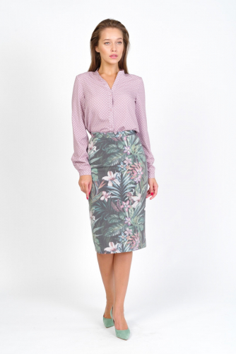 Элегантная юбка-карандаш длины миди из костюмной ткани с цветочным принтом. Пояс втачной. Застежка на пуговицу и потайную молнию расположена в центральном шве спинки. Сзади шлица. Юбка придаст женственности даже строгому деловому образцу.  Итальянский принт.
