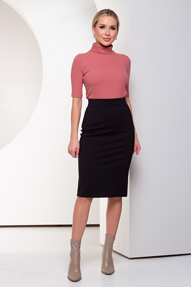 Офисная юбка-карандаш из плотного трикотажного полотна. Верх на широкой резинке, обеспечивающей комфортную посадку на талии. В среднем шве спинки расположена потайная застежка на молнию. Модель без подклада. Низ ровный, сзади шлица.