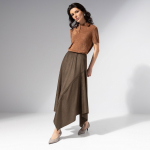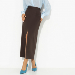 Юбка ЧАРУТТИ цвета спелого каштана – буквально суть осенней элегантности. Плотная замша создана для осени, как резиновые сапоги для луж. Безупречный мэтч! Дополняйте образ блузами, свитерами или жакетом из той же ткани, и чувствуйте себя роскошно, даже если погода не шепчет. Юбка трапециевидного силуэта в длине миди. Посадка высокая. Юбка застегивается на пуговицу и молнию. Есть карманы. Деликатный разрез по центрально части изделия.