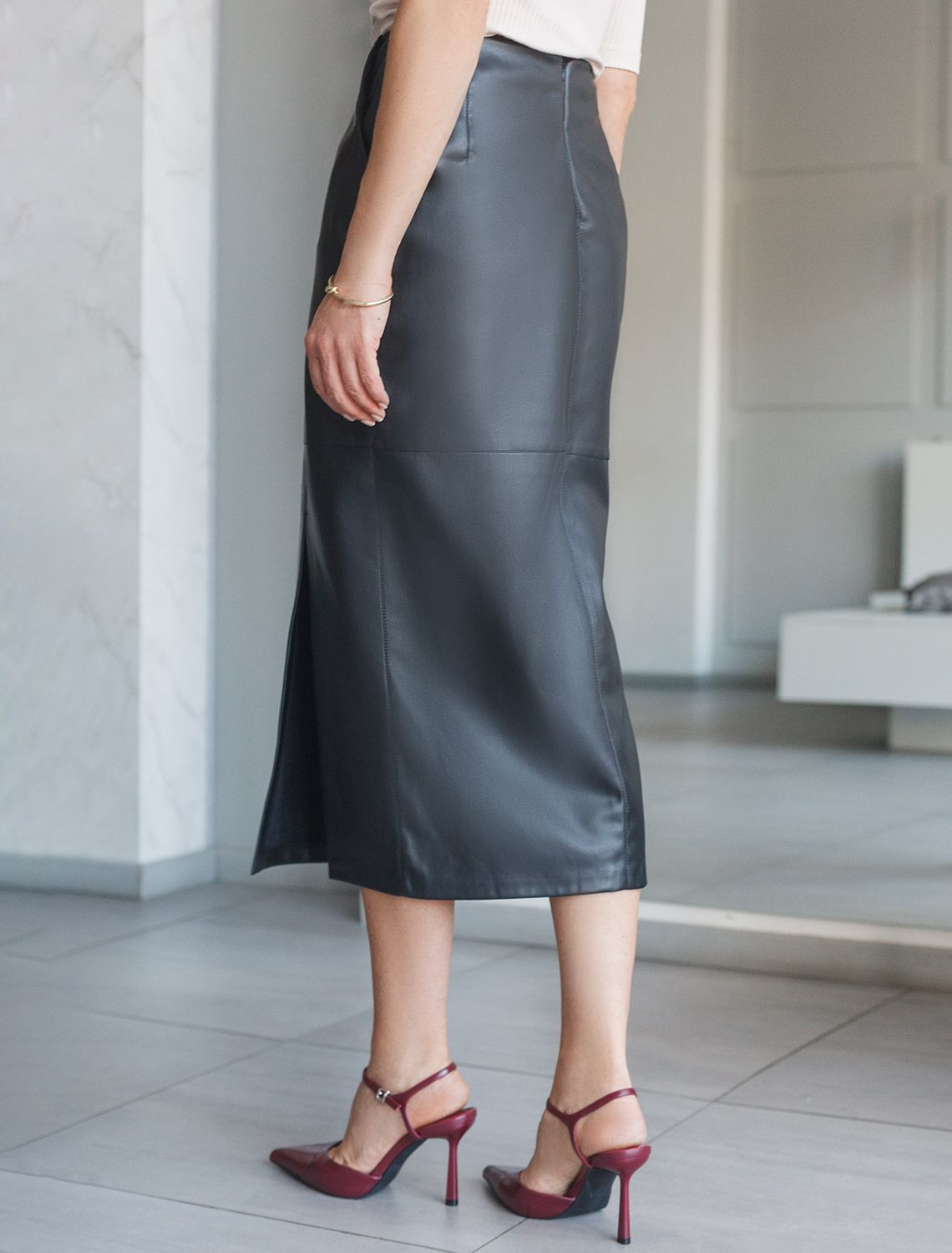 Идеальный выбор для дерзкого и женственного образа. Облегающий силуэт юбки-карандаш в черном цвете подчеркивает фигуру, а разрез сбоку чуть выше колена добавляет нотку соблазна и удобство при ходьбе. Мягкая обтачка пояса с изнаночной стороны обеспечивает комфорт. Качественная искусственная кожа выглядит дорого, сохраняя эластичность и износостойкость.