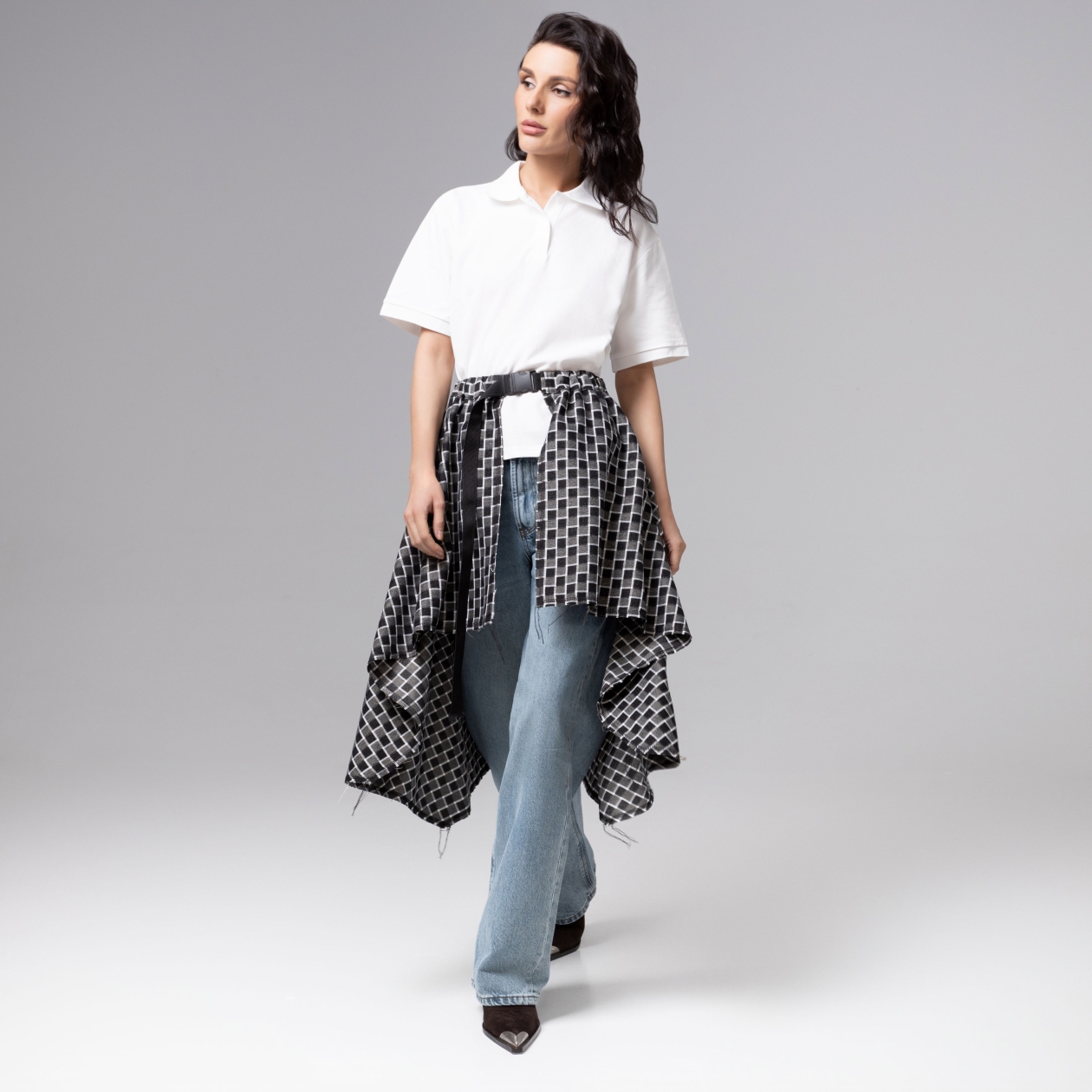 Не юбка, а шахматная партия! Юбка-килт в коллекции PREMIUM обыгрывает асимметрию так, что даже строгие брюки становятся смелым фоном. Регулируемый пояс обеспечивает идеальную посадку, подчеркивая линию талии и придавая силуэту утонченную выразительность. Идеальна для тех, кто любит быть на шаг впереди.