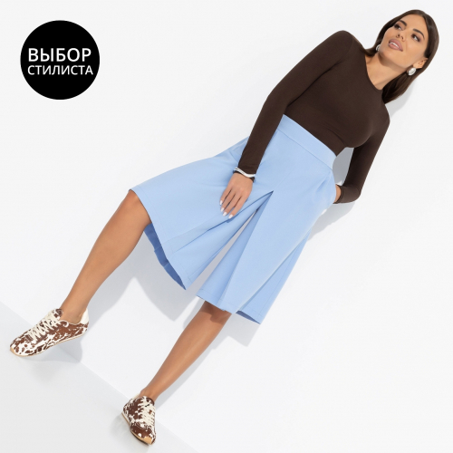 Вжух! И ты на лазурном берегу европейского побережья. Сидишь в мягком кресле на террасе ресторана с легким коктейлем на основе игристого. На тебе юбка в длине макси от CHARUTTI небесного оттенка и вся жизнь впереди, когда ты смотришь на море. Трендовая длина, очень удобная. Изделие с карманами. Пояс юбки на резинке. Есть лейбл бренда на передней части пояса.