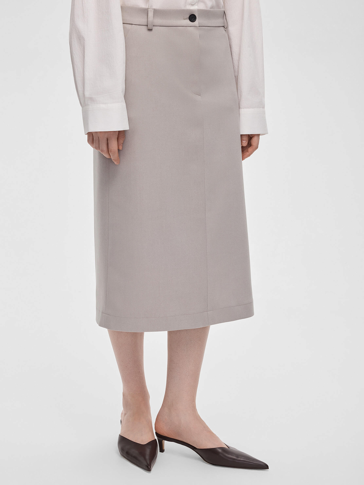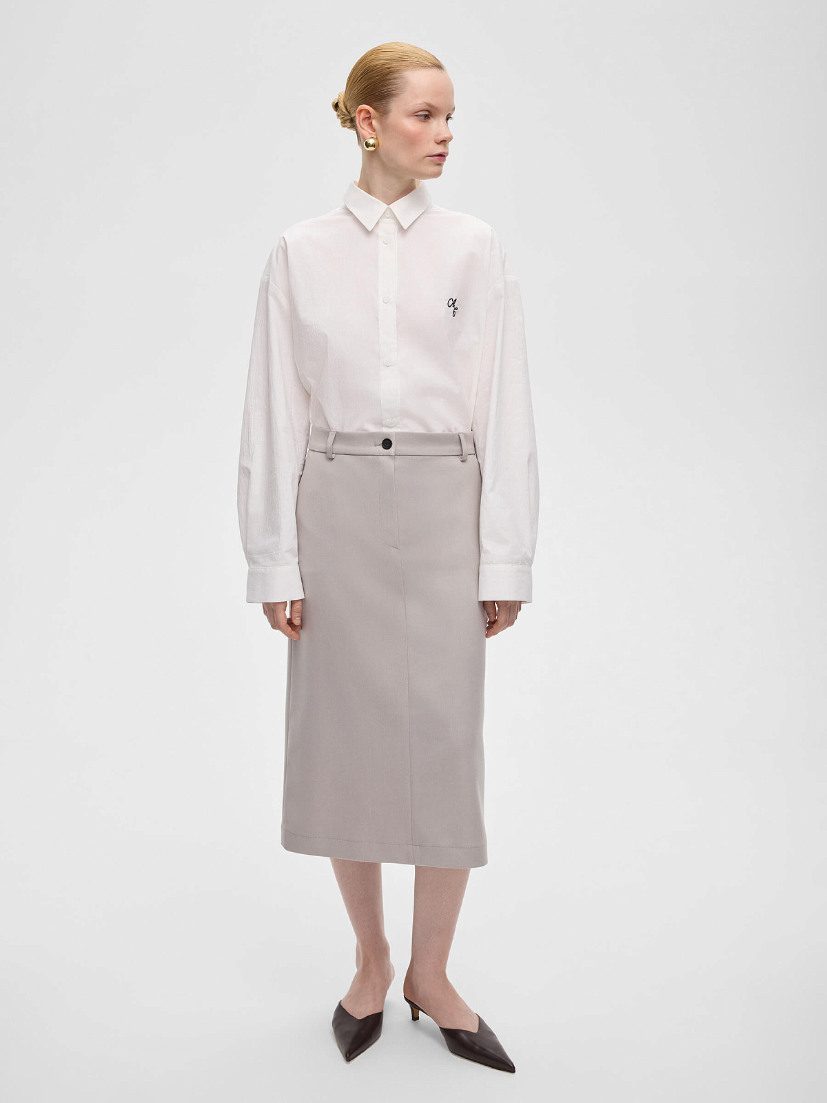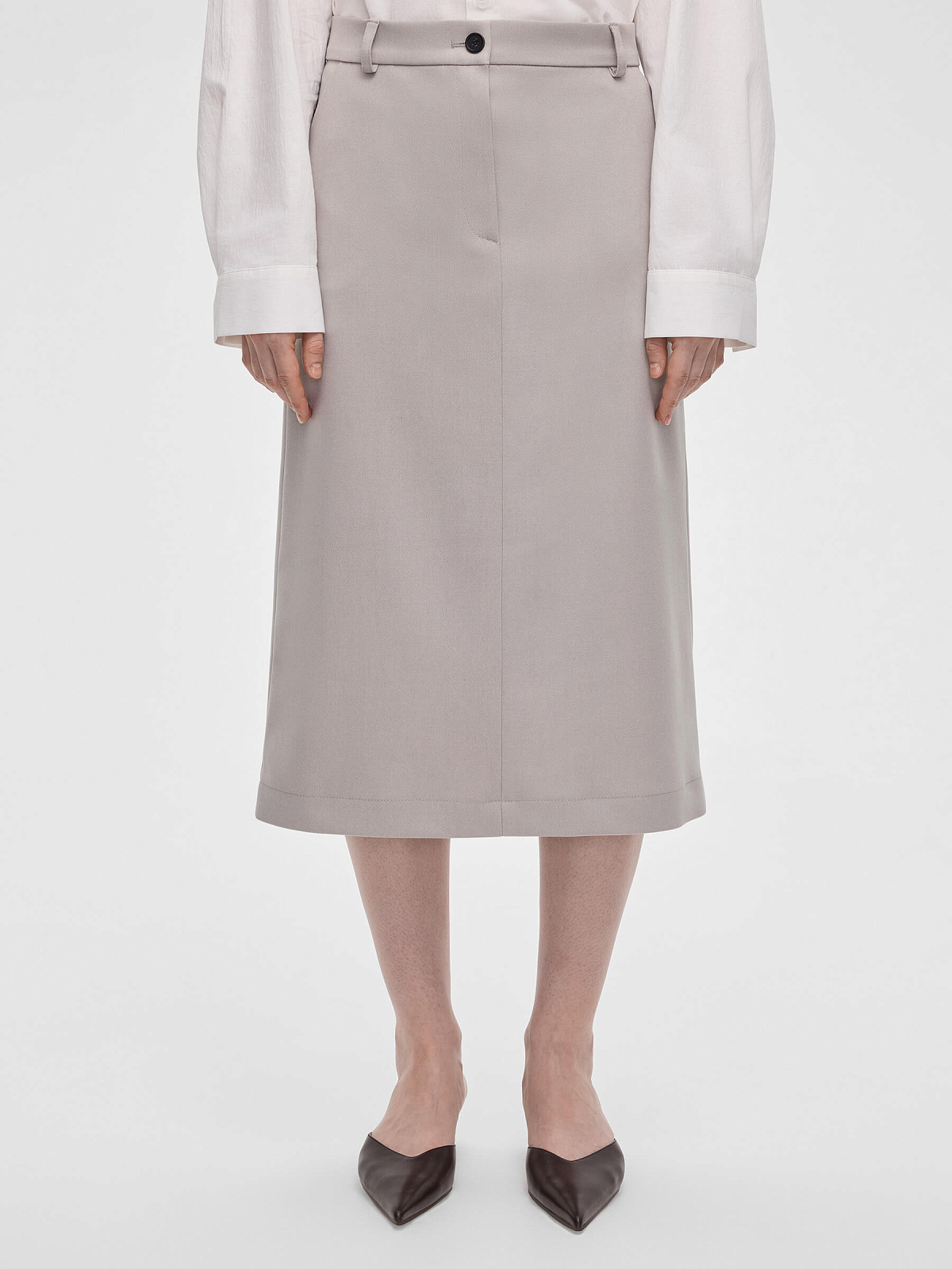 Юбка миди прямого кроя займёт достойное место в базовом гардеробе. Она оснащена застежкой на молнию и пуговицу, а также имеет шлицу по спинке для удобства движений. Изготовленная из качественной костюмной ткани на подкладе.