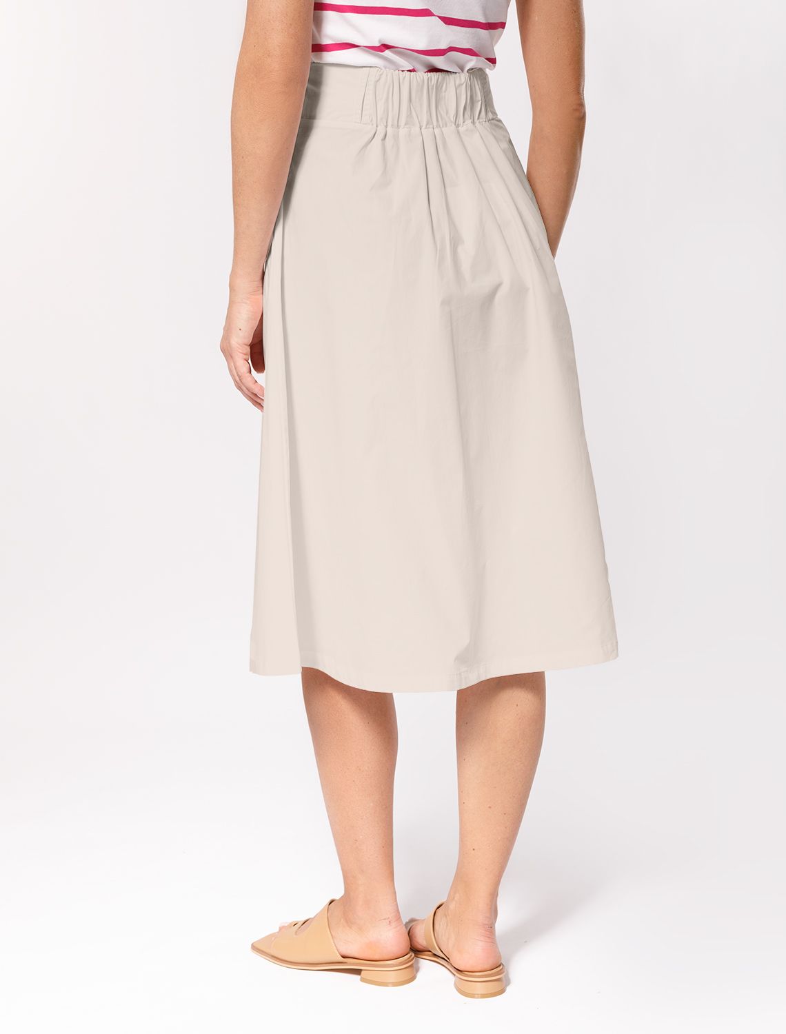 Юбка выполнена из плотного поплина. Удобный пояс на широкой резинке подчеркивает талию при этом не сковывая движений. Модель дополнена удобными карманами по бокам. Материал изделия прочный и износостойкий, но при этом мягкий и удобный, отлично держит форму и подходит для повседневной носки, гарантируя абсолютный комфорт даже в жаркое время года. Без подкладки