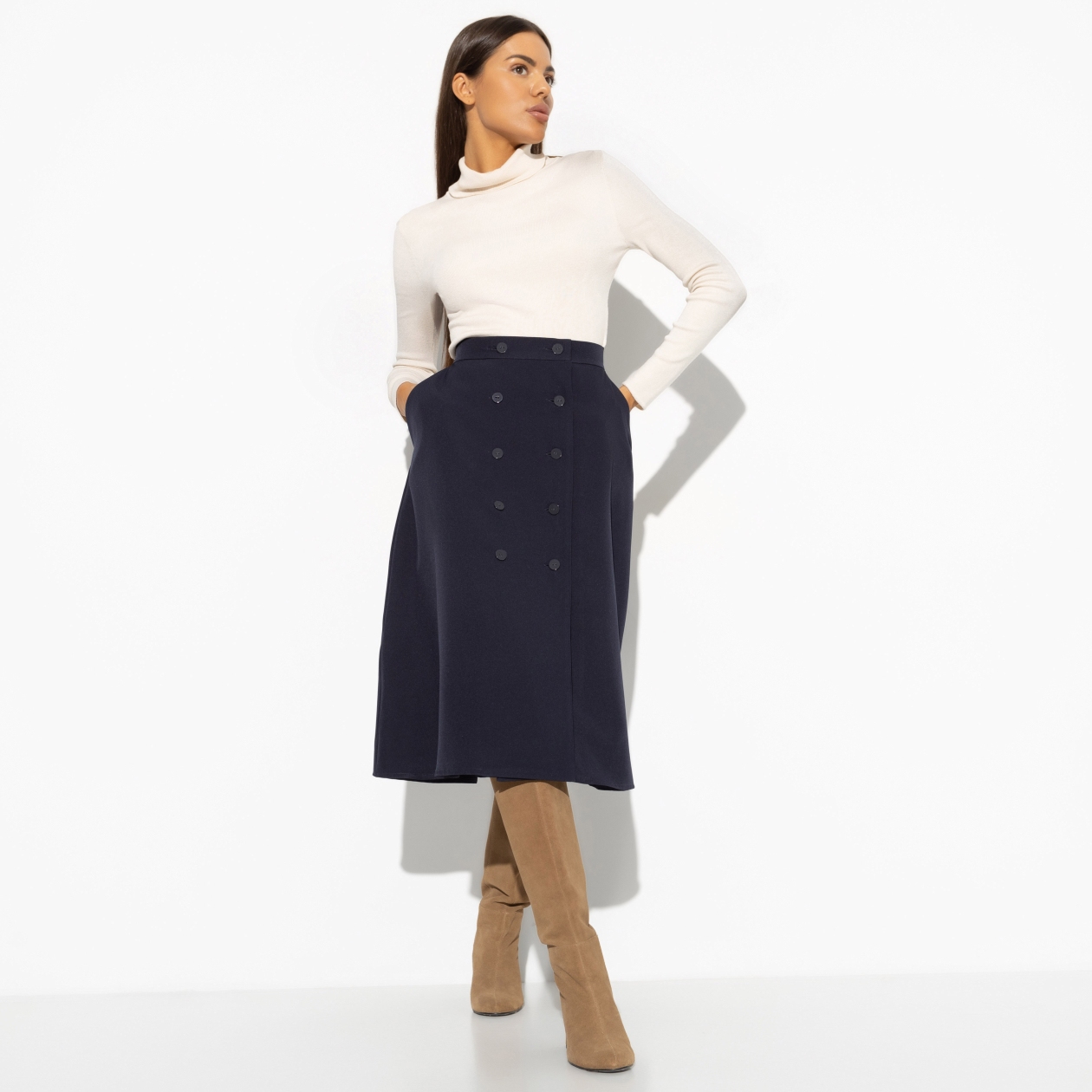 Когда тебе нужно сообщить родителям, что ты заводишь собаку, переезжаешь с ней, сделала татуировку и перешла со стабильной работы во фриланс, выбирай элегантную юбку CHARUTTI. Это единственная вещь в этот день, за которую тебя хвалит мама. Юбка женственного силуэта на запах. Акцентные пуговицы по длине изделия. Есть карманы.