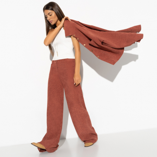 Количество экстравагантных вещей в твоем гардеробе стремительно растет. Это итог саморефлексии. Ты приняла решение быть счастливой, перестать переживать о том, что подумают другие и носить красную кожаную юбку просто потому, что тебе она нравится. Да, даже на работу. Юбка на запах в длине миди. Есть глубокий разрез. Посадка изделия на талии. Застегивается на пуговицы. Есть шлевки.