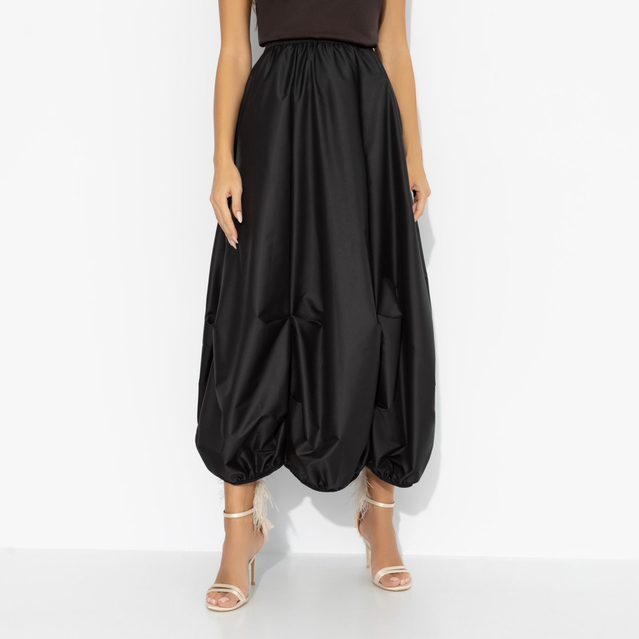 Ты создана для сцены! Юбка-баллон мгновенно переносит в атмосферу балета. Сразу хочется выйти в лучи софитов, захватить внимание зрителей и ловить аплодисменты ‒ твой силуэт привлечет внимние, где бы ты ни находилась. Посадка по талии подчёркивает фигуру, а легкий блеск ткани делает образ кинематографичным и дерзким. Юбка из плащевой ткани отлично держит форму. Пояс на резинке, декоративные защипы по подолу.