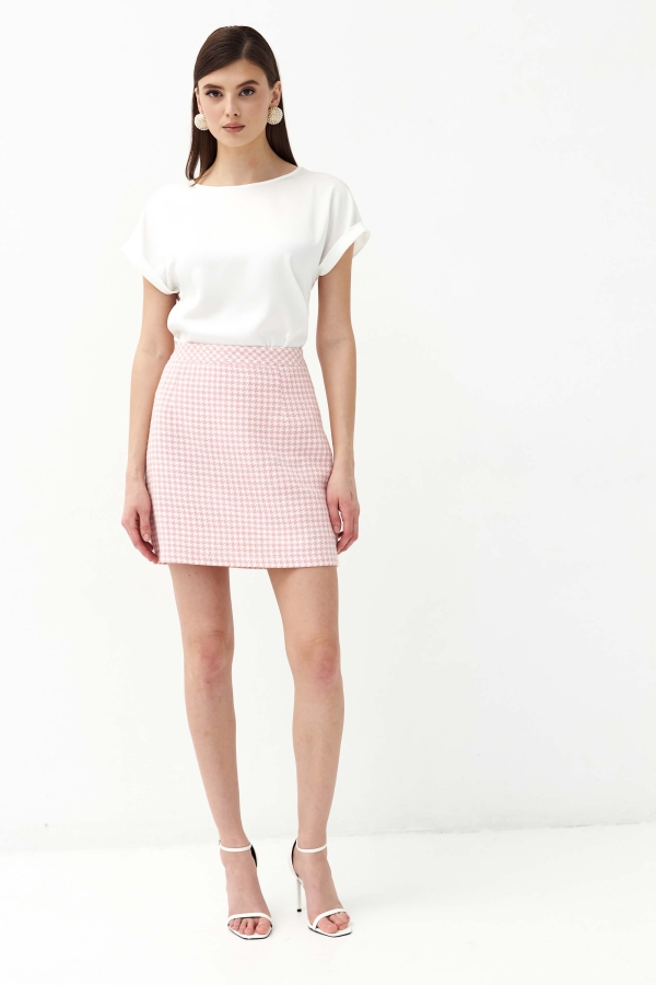 Лаконичная юбка длины мини из твида. Застёжка на потайную молнию сбоку. Изделие на подкладке из поливискозы.