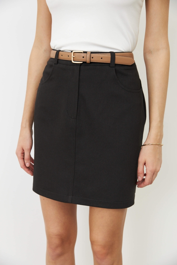 Лаконичная юбка из джинсового полотна. Модель прилегающего силуэта на притачном поясе. По спинке кокетка с накладными карманами. По переду боковые карманы, застёжка-гульфик.