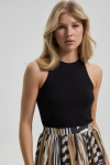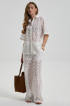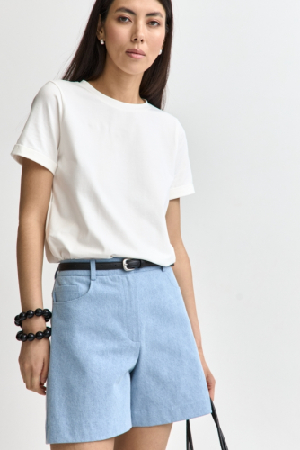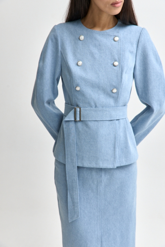 Юбка длины мидакси из джинсового полотна. Модель прямого силуэта на притачном поясе. По переду высокий разрез, боковые карманы. По спинке кокетка с накладными карманами. Застёжка-гульфик.