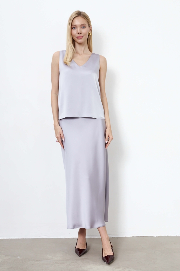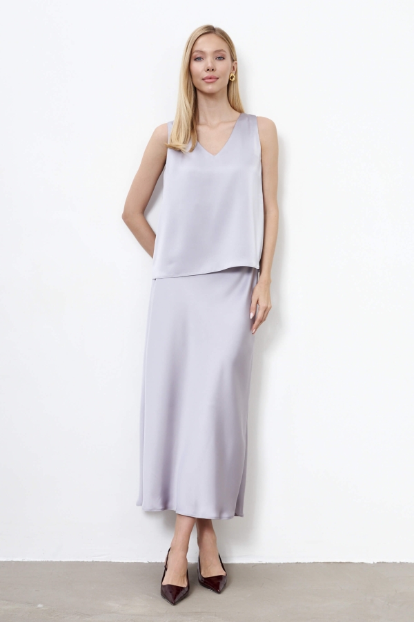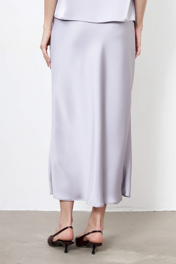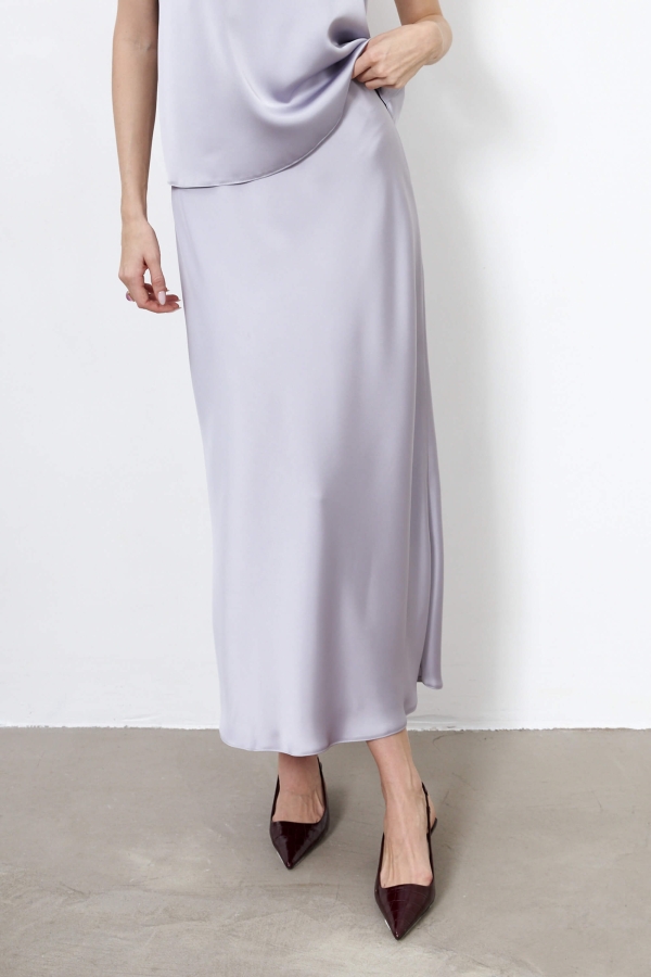 Утонченная базовая юбка из костюмного атласа. Модель трапециевидного силуэта, выкроенная по косой.