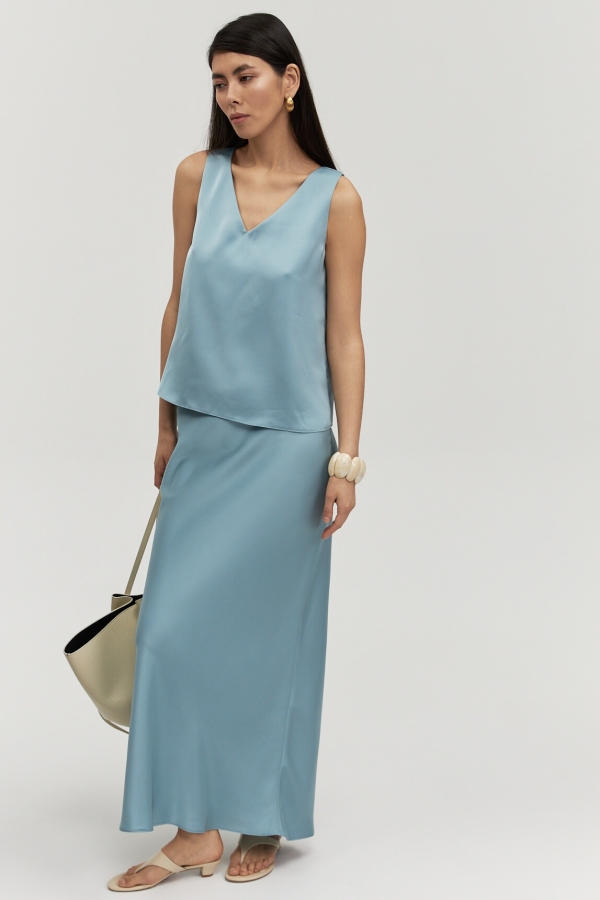 Юбка длины макси из высококачественного атласа. Модель свободного силуэта, выкроенная по косой. Застежка молния в боковом шве.