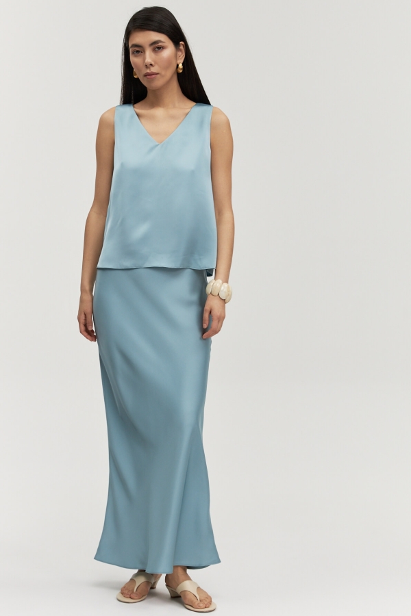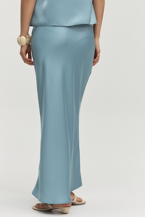Юбка длины макси из высококачественного атласа. Модель свободного силуэта, выкроенная по косой. Застежка молния в боковом шве.