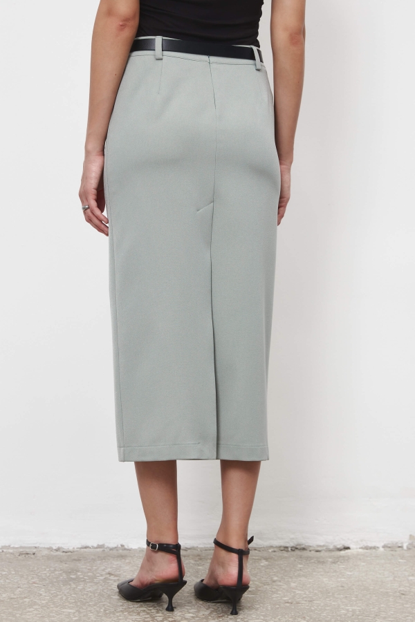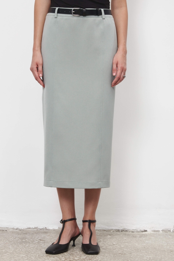 Лаконичная юбка из костюмной поливискозы. Модель прямого силуэта. Средняя посадка на притачном поясе со шлевками. По переду рельефные швы. По спинке шлица. Застежка на потайную молнию. Изделие на подкладке из поливискозы.