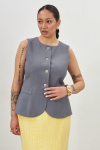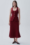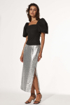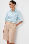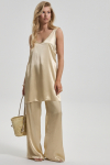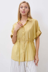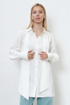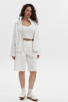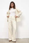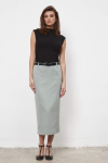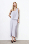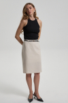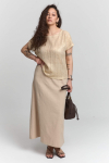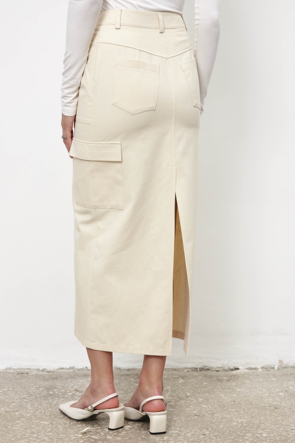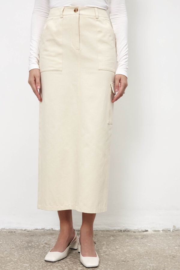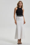 Юбка длины миди из денима в сливочном оттенке. Модель прямого силуэта. Притачной пояс со шлевками. По переду и спинке накладные карманы. По спинке кокетка и разрез.