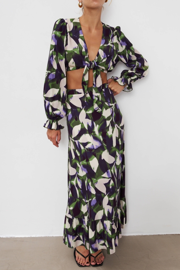 Юбка из высококачественного вискозного полотна с авторским принтом. Модель полуприлегающего силуэта на притачном поясе с молнией сзади.