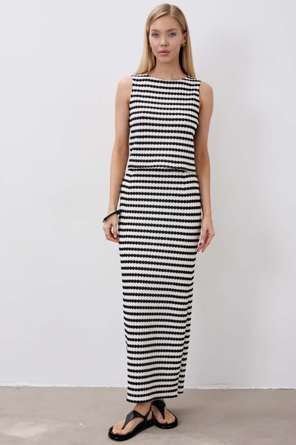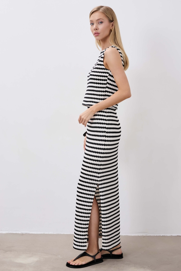 Юбка длины миди из хлопкового полотна. Модель прямого силуэта на трикотажном подкладе в тон. В боковом шве разрез.