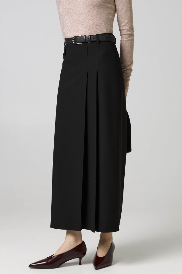Юбка с ассиметричными складками из костюмной поливискозы. Модель A-силуэта длины миди. По переду декоративные складки и клапан. Пояс со шлевками. По спинке застежка - потайная молния. Пояс со шлевками. Изделие на подкладе.