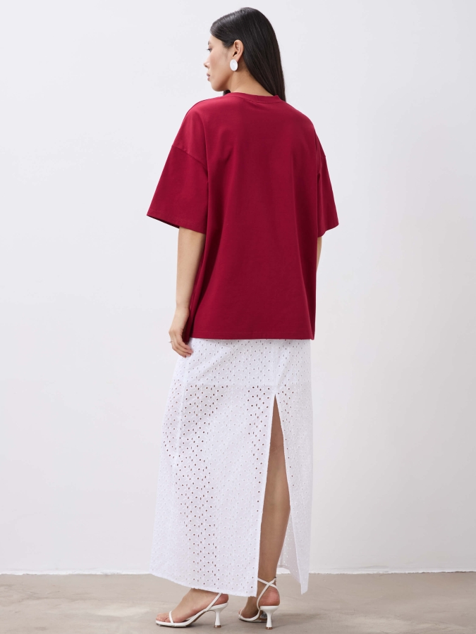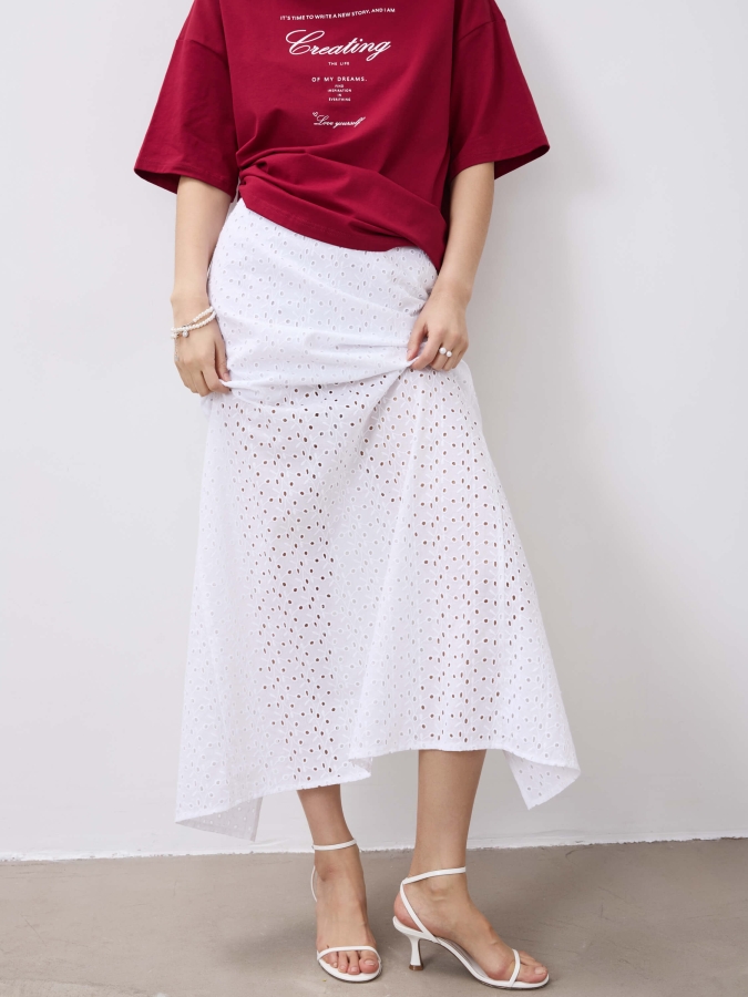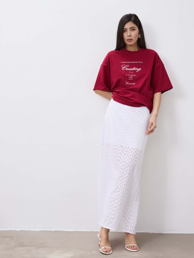 Трендовая юбка must have на летний период из хлопкового шитья на подкладке из батиста. Юбка А-силуэта на обтачке с потайной молнией в боковом шве.