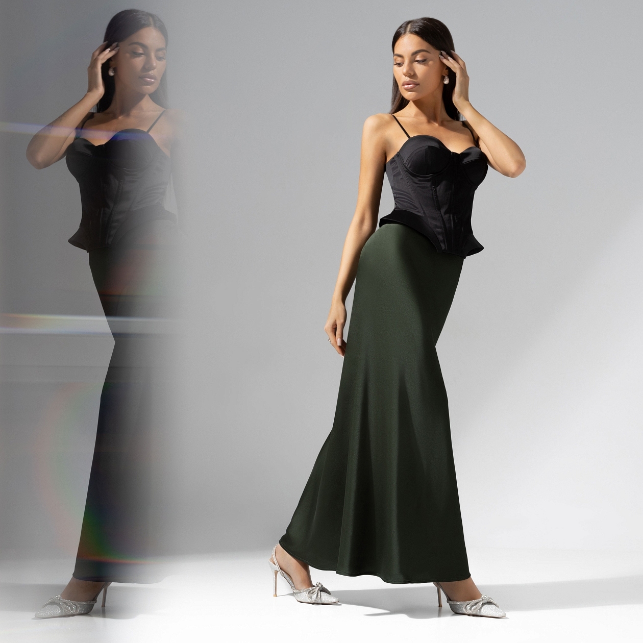 Захватывающее приключение начинается с минуты, когда вы выбрали новое для себя. Юбка в глубоком зеленом цвете от CHARUTTI станет символом неизведанного и окутывающего. Время сделать первый шаг в счастливое будущее. Юбка приталенного силуэта в длине макси. Высота посадки регулируется. Талия изделия на тонкой вшитой резинке. Подклада нет.