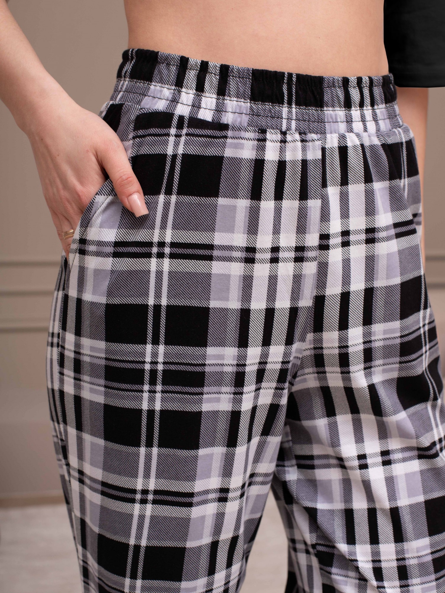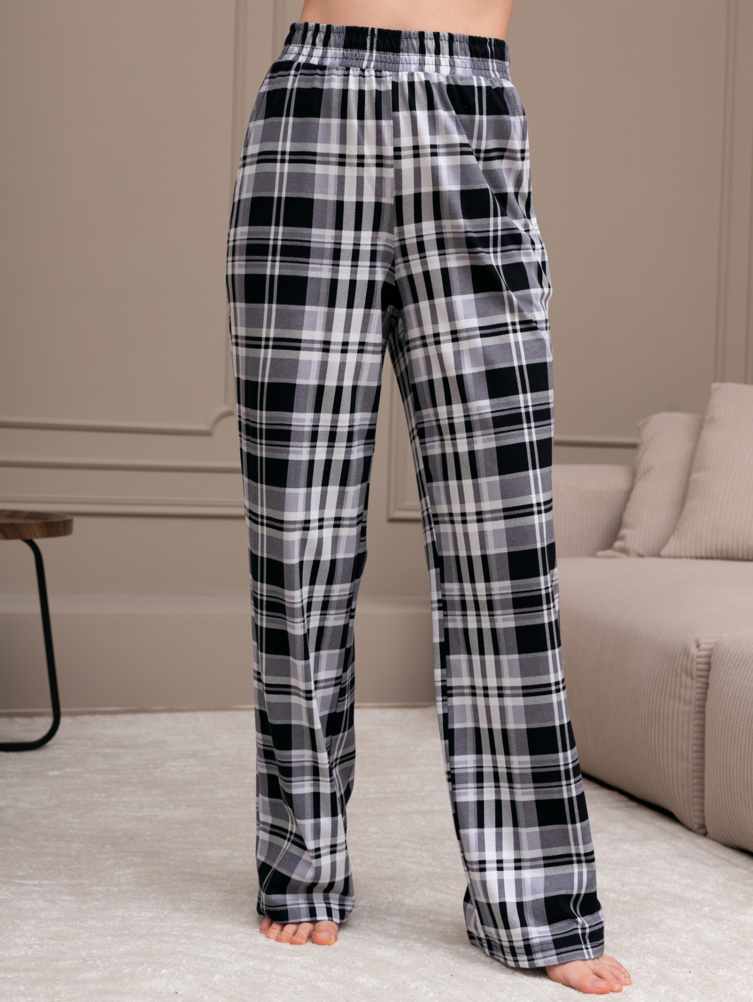 Костюм женский из трикотажного полотна "кулирка" в комбинации двух видов: гладкокрашеного и набивного с тематическим рисунком, состоящий из футболки и брюк. Футболка из гладкокрашеного полотна, свободного силуэта, со спущенной линией плеч и втачными короткими рукавами, горловиной овальной формы, обработанной втачной планкой и отделочной строчкой. В центре переда - принт, выполненгный в технике шелкографии. Брюки из полотна с набивным рисунком длинные, прямые, на притачном поясе с эластичной тесьмой внутри и карманами в боковыых швах.
