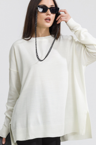 Свободный крой со спущенной линией плеча создаёт просторный силуэт, в котором можно двигаться, как хочется! Свитер оверсайз (oversize) – только легкость и максимальное удобство. Ворот защитит от прохладного ветра.