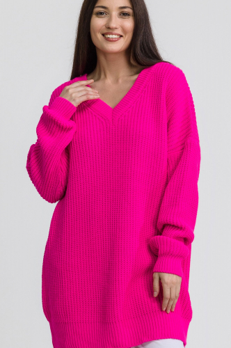 Длинный базовый свитер с V-вырезом впишется в повседневные осенние или зимние образы. Объемный джемпер идеален для уютных вечеров дома или встреч с друзьями.