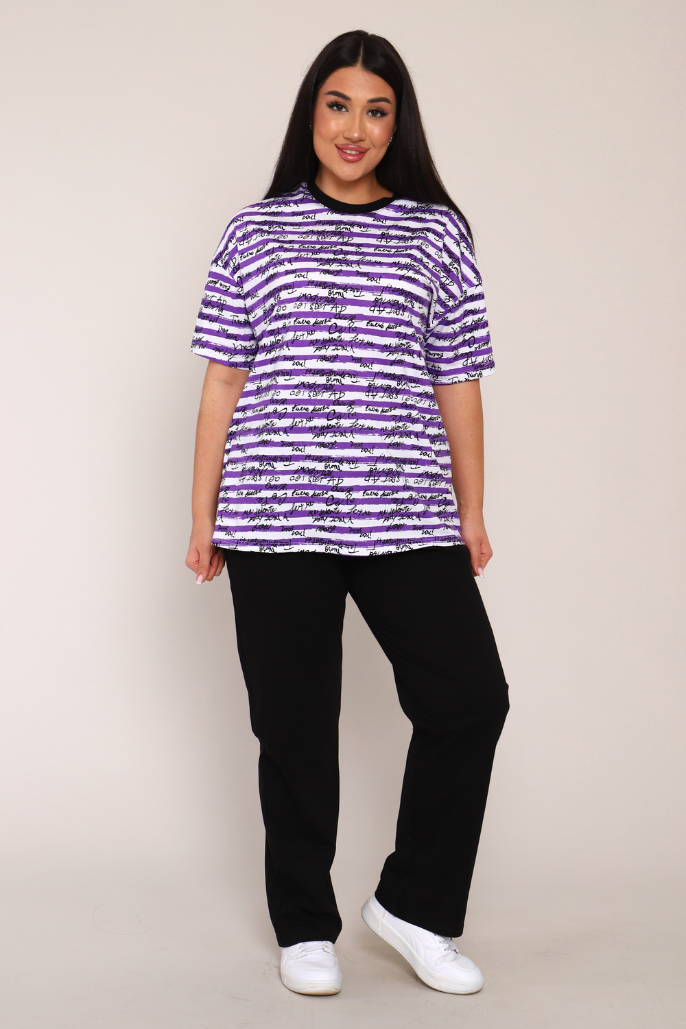 Этот легкий летний трикотажный костюм идеально подходит для домашних повседневных занятий. Брючный комплект сочетает комфорт и стиль, удовлетворяя потребности женщин разных размеров, включая категорию больших. Он особенно удобен для невысоких женщин, беременных и для полных, благодаря свободному крою и оверсайз форме. Костюм выполнен из приятного на ощупь хлопка, что делает его отличным выбором для жаркой погоды. Материал позволяет коже дышать, создавая ощущение прохлады даже в самый знойный день лета. Вы можете комфортно носить этот комплект дома или выйти в нём на прогулку на море. Легкость ткани придаёт дополнительное удобство во время долгого ношения. Брюки имеют эластичную талию, что улучшает посадку и обеспечивает свободу движений. что добавляет образу свежесть и не стесняет движений рук. Благодаря такому дизайну модель прекрасно сочетается с любой домашней одеждой. Комплект двойка включает в себя футболку с принтом и прямые Для многих женщин выбор одежды играет важную роль не только для выхода, но и дома. Трикотажная основа костюма нежно соприкасается с кожей, позволяя чувствовать себя уютно каждый день. Отдельного упоминания заслуживает свободный крой костюма. Этот элемент дизайна подчеркивает женственные линии тела, не причиняя дискомфорта и не ограничивая движения.