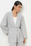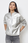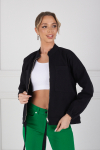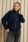 Жакет-бомбер из денима выполнен по классической джинсовой технологии. Свободный силуэт с застёжкой-молнией и накладными карманами. Рукав втачной в спущенную пройму. Нижняя часть рукава присборена на резинку. Линия горловины оформлена воротником-стойкой. Снизу изделие затягивается на кулиску.