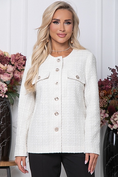 * Шикарный жакет в стиле шанель из качественного костюмного твида(ткань производство Турция) с центральной застежкой на пуговицы свободного силуэта.По переду декоративные клапаны.