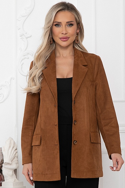 * Жакет свободного силуэта из экозамши,с центральной застежкой на три пуговицу. Воротник отложной с лацканами. По переду жакета функциональные карманы с клапанами.
