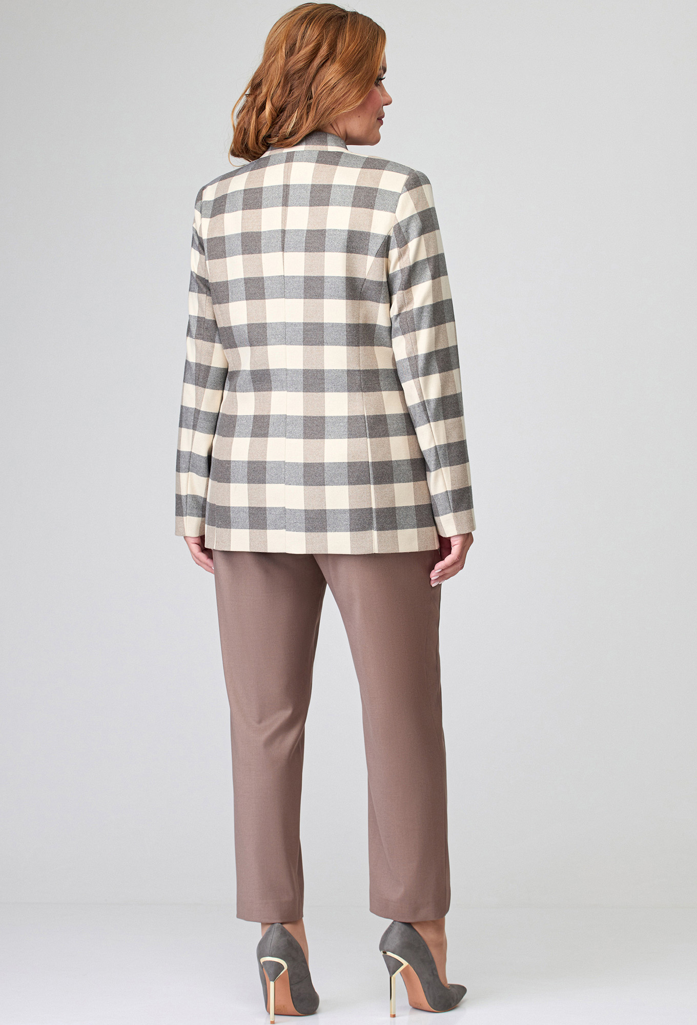 Модель: Базалини 4489 серо-бежевый ..показатьi>Рост: 164 см (девушка на фото 170см) Сезон: Осень-Зима Тип ткани: 63% полиэстер, 34% вискоза, 3% эластанУдобный однобортный жакет полуприлегающего силуэта выполнен из мягкой, приятной на ощупь испанской ткани с добавлением вискозы с ярко-выраженным клетчатым рисунком. Модель станет удачным вложением в гардероб: днём она будет уместно смотреться в офисе, а вечером в ней можно отправиться на светское мероприятие. Перед с фигурным вырезом горловины, с застёжкой на петли-пуговицы и двумя функциональными карманами с рамками. Рукава втачные двушовные. Воротник-стойка. На подкладке.