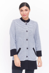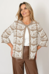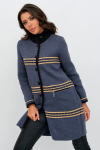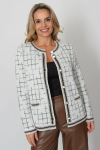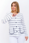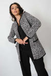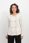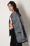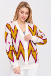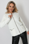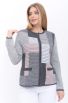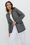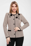 Женский вязаный жакет полуприлегающего силуэта на пуговицах. Трикотажный пиджак выполнен из высококачественной пряжи с составом 30% хлопок 70% ПАН. Теплая кофта на пуговицах имеет круглую горловину без воротника, рукава втачные длинные. Длина изделия 62 см, длина рукава 61 см. В трикотажном жакете предусмотрены функциональные прорезные карманы. Вязаный пиджак выполнен жаккардовым переплетением, образующим мерцающий орнамент. Горловина, низ рукавов, низ изделия и вход в карманы обработаны бейкой контрастного цвета. Нарядный жакет украшен элегантным узором из трикотажных шнуров и натурального меха кролика. Эффектный пиджак полуприлегающего силуэта подойдет для любого типа фигуры и составит модный, праздничный образ с любым низом: брюки, джинсы, юбка. черно-розовый